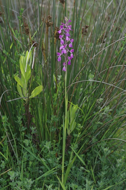 Κατανομή: Η Anacamptis palustris παρουσιάζει ευρεία μεσο-ευρωπαϊκή εξάπλωση, στην Ισπανία Γαλλία, Γερμανία με επέκταση σε πολλές Μεσογειακές χώρες. Δια μέσω της Ιταλίας φτάνει στην Ελλάδα αποικίζοντας τα Ιόνια, την Ήπειρο και περιοχές της δυτικής Πελοποννήσου. Στα Βαλκάνια και ανατολική Ελλάδα φαίνεται να αντικαθιστάται σταδιακά από την Anacamptis elegans. Περιγραφή: Φυτό λεπτό, ύψους 35-70 cm. Φύλλα λογχοειδή λεπτά και μακριά, το ανώτερο μέχρι 7 εκ. Η ταξιανθία συνήθως αραιή με μέσο μήκος περί τα 15 εκ. Τα άνθη συνήθως ανοιχτόχρωμα ιώδη αλλά με ποικίλο χρωματισμό ως και σκούρα ιώδη. Χείλος έντονα τρίλοβο με τους πλευρικούς λοβούς επίπεδους και μερικές φορές με ανερχόμενα κράσπεδα. Ο μεσαίος λοβός εμφανίζει εγκοπή στην κορυφή και έχει ανοιχτόχρωμη βασική περιοχή με συνήθως έντονη στίξη. Βράκτια σχεδόν με ίδιο μήκος με την ωοθήκη. Πλήκτρο οριζόντιο ή ελαφρά ανερχόμενο Η Αnacamptis palustris σε σχέση με την Anacamptis elegans εμφανίζει πιο ανοιχτόχρωμα άνθη, έντονα τρίλοβα και σχετικά επίπεδα. Τα βράκτια είναι σαφώς μικρότερα. Το φυτό και η ταξιανθία της An. palustris είναι συνήθως μικρότερα. Παραστατικά οι διαφορές, στις εικόνες μετά το αγγλικό κείμενο. Βιότοπος: Υφάλμυροι παραθαλάσσιοι υγρότοποι είναι οι τυπικές θέσεις που μπορεί κάποιος να βρει Anacamptis palustris. Φυτό που αντέχει σε ψηλές συγκεντρώσεις αλατιού και αλκαλικά εδάφη, αποκλειστικά σε ηλιόλουστα μέρη. Εποχή άνθησης: Αρχές Μαΐου - αρχές Ιουνίου. Distribution: Anacamptis palustris shows wide spread mid-European distribution, at Spain, France, Germany, with expansion in many Mediterranean countries. Through Italy, it colonizes Ionian islands, Epirus' coastal areas and some locations on western Peloponnese. In the Balkans and eastern Greece seems to be gradually replaced by Anacamptis elegans. Description: Thin plant with height of 35-70 cm. Habitat: Salty coastal wetlands are the typical habitats preferred by Anacamptis palustris. Plant that can withstand high salt concentrations and alkaline soils, almost always in sunny places. Flowering time: Early May - mid June.