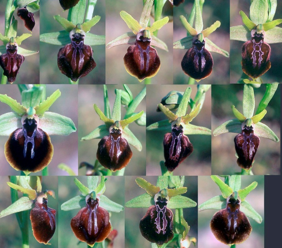 In 2008, Helmut Presser discovered in the forests of Taygetos, at high altitudes, an Ophrys population with intermediate features between Ophrys mammosa, aesculapii and epirotica. During the next 2 years, many more populations of this unique taxon discovered by Stefan Hertel at Taygetos and Parnon mountains, all in altitudes above 950m and in sparse Abies cephalonica forests. Ophrys taygetica has a black - reddish, entire lip, longer than epirotica's lip (11-13mm), sometimes with yellow border, with a velvety pilosity, longer in the shoulders and a small white appendix at the top. Basal lip area is flat, rarely baring small, attenuated "mammosities". Stigmatic cavity is small and constricted, with white side "walls", contrasting with the rest, black lip (reminding Ophrys aesculapii). Lateral sepals are sometimes bi-colored (like in Ophrys mammosa). Late flowering time, during May, the same time with the first flowers of Himantoglossum caprinum. Back to Orchids list |