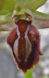 The only representative of exaltata group in Greece, it is distributed in Ionian islands (Kerkyra, Cephalonia and Ithaki), while it has been also reported from some coastal locations of Epiros (Thesprotia, Preveza) and Sterea Ellada (Etoloakarnania)*. Due to the domination of species of the mammosa group in these areas, Ophrys cephalonica seems intensely influenced by them, having sometimes bicolor lateral sepals (plants No1 and 8) or obvious side swellings in the base of the lip (plants No2, 3, 8 and 9). Its main characteristics are the thick and complete pilosity of the labellum and the insertion of the appendage into a notch of the lip (plant No9). Swollen pseudoeyes, converging towards the stigmatic cavity (close-up in slides No7, 8 and 9 and comparison with Ophrys herae in slide No10). Early flowering time, on March and first fortnight of April. * Notes: The presented Ophrys cephalonica of the following table, comes from the south-western coast of Lefkada island. Until now, it has been considered that this Ophrys was missing from Lefkada and Zakynthos islands, for inexplicable reasons (Delforge, P. 1994.- Note de synthèse sur la répartition des Orchidées des îles ioniennes (Nissia Ioniou, Grèce). Natural. belges 75 (Orchid. 7): 209-218). Probably, it is extremely rare for Lefkada island as it was found in only one location, due to lack of favorable biotopes, or it is subject of an ongoing absorption process by neighboring species of the mammosa group. You may see more comments in the text inside the table.