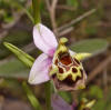 This orchid belongs to a group of Ophrys closely related to Ophrys candica because in their colonies, individual plants are presented with lips which have simple (without design) macula, similar to Ophrys candica's macula. Nevertheless they differ from Ophrys candica as they have long side lobes, diverging outwards like the horns of a bull (for this reason Alibertis named them "minoa"). All the above Ophrys were named in the past as Ophrys minoa (P. DELFORGE, 1991) or Ophrys candica ssp. minoa (Ch. ALIBERTIS & A. ALIBERTIS, 1989) and their distribution was including Peloponnisos, Kythira, Crete, Karpathos, Rhodes and Anatolia. Recently they were splitted to many different species and subspecies and for the moment, plants from western Crete and Rhodes are considered as a variety of Ophrys candica (Ophrys candica var. minoa), from eastern Crete and Karpathos are recognized as a new species named Ophrys helios, in Kythira island they constitute a new subspecies of Ophrys candica (Ophrys candica ssp. cytherea) and in Turkey they are classified to a new species with the name Ophrys lyciensis. Also there were older descriptions of Ophrys minoa from Lesbos, which probably are wrong identifications of Ophrys homeri. The plants from Peloponissos were recently named "Ophrys lacaena". This Ophrys differs from Ophrys candica as it has complex macula design, long and spreading out side horns and wider stigmatic cavity (the stigmatic cavity of Kytherian plants, for example, is constantly narrow as you may see in the page of Ophrys candica ssp. cytherea and in the comparison photo, inside the following table). Presently, Ophrys lacaena exists with certainty only in southern part of Peloponissos, Lakonia, in coastal areas around Gytheio. It flowers on the late, from mid April to May. *Note: the following plants (No1-5) are coming from a location near Gytheio, which was kindly indicated by James Mast de Maeght, who spotted them 20 years ago, in 1983! Luckily their biotope survived besides the intense hotel building activities in the surrounding coastal area.