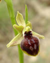 Restricted to north-western continental Greece, this species appears similar to Ophrys epirotica, but it's flower has a longer lip (length: 10-14mm). The lateral sepals are usually unicolored and, more rarely, with a purple tint in the lower half (plants No 1 and 4). Closely related to Ophrys mammosa, as the lip "shoulders" sometimes bear small rounded swellings (plant No3), but the flowers are smaller and the flowering time is late, on May-June. (See also the special page: "Variability of late flowering members of the Ophrys mammosa group in North and Northwestern Greece") Back to Orchids list |