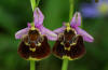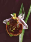 A species, recently divided from Ophrys heterochila and currently considered endemic to Rhodes and especially to the mixed pine - cypress forests around Profitis Ilias. It has some small differences from Ophrys heterochila of Samos and Turkey: More pale sepals, more flat lip base and paler entrance of stigmatic cavity. This last, in Ophrys oreas is light-orange and makes contrast to the rest of the lip, while in Ophrys heterochila it is dark and becomes light - colored only at its lower edge. Lip pilosity seems similar, usually more dense and complete at Ophrys heterochila. It seems that Ophrys oreas flowers much earlier from end February to end of March. Note: The slides No1-3 belong to James Mast de Maeght, who offered them very kindly.