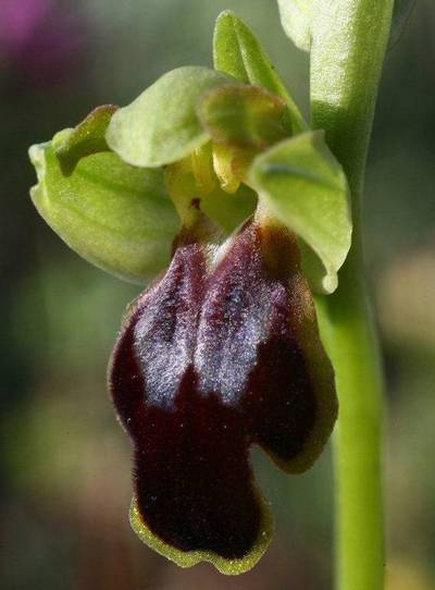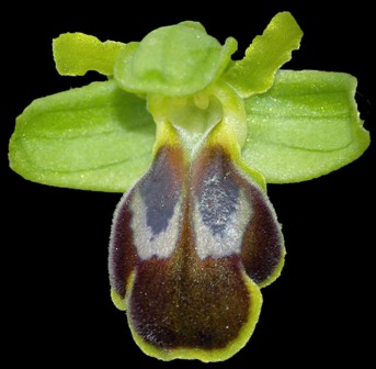 Late flowering Ophrys which was found in several sites on Crete, as in Spili in Zaros, in Asteroussia and Thripti mountains. Compared to Ophrys cressa, it has a longer lip (12,3-14,1 mm versus 10-11mm of Ophrys cressa) and more flowers (from 2 to 8). The stem is usually tall and the flowers are flat compared to Ophrys creberrima. Usually they bear a wide yellow margin. The coloration of the lip varies from brown to black. The speculum is separated by a distinct central, longitudinal groove. Generally it looks like a late flowering Ophrys creberrima with a more flat lip. When it occurs together with Ophrys creberrima, flowering of Ophrys phaidra starts when the latter shows just the last flowers. Currently, the pollinator is unknown.